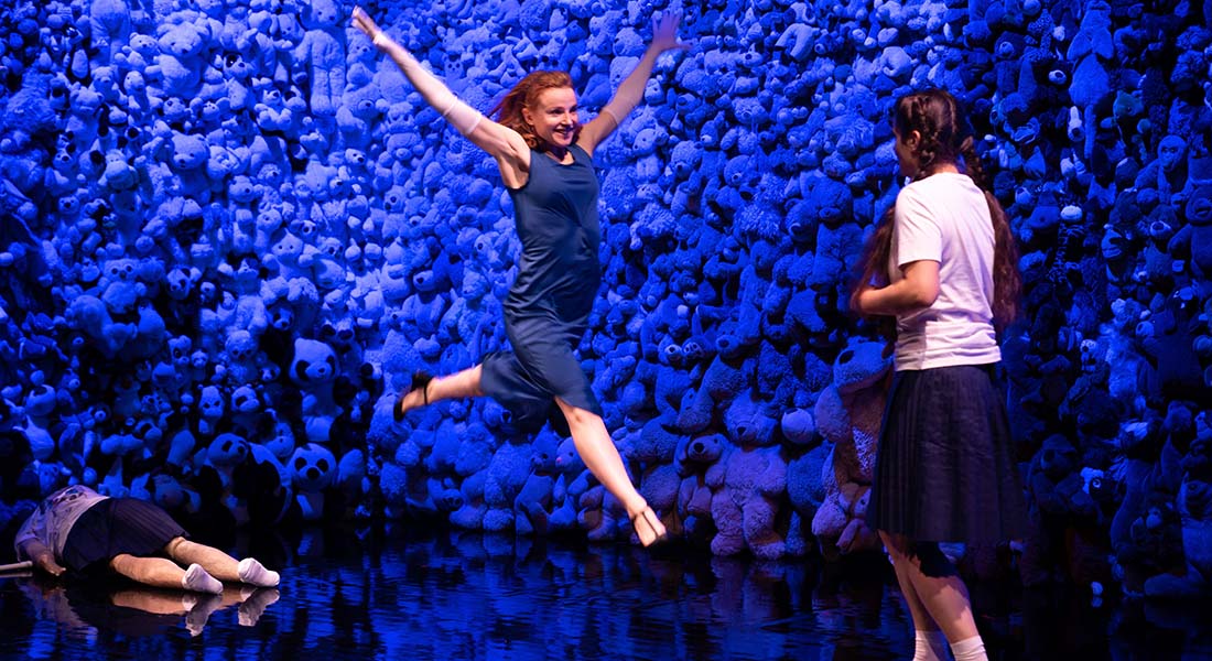 Place au théâtre, à une série de rencontres comiques, pétillantes et tout en mouvements qui ramènent à notre présent les figures originelles du conte : l’épouvantail sans cerveau est devenu un vigile de paille dont la langue fourche de manière hilarante, le bucheron de fer-blanc sans cœur s’est transformé en un garçon-boucher incrusté dans le mur de peluches, le geste bloqué alors qu’il s’apprêtait à découper une côtelette, le lion sans courage s’est changé en patronne poltronne à la fabuleuse crinière bleue. Quant à la méchante sorcière inanimée au pied du lit, elle ressemble étrangement à Dorothy, en un double marionnettique qui interroge un champ de possibles. Difficile, entre un père qui crie plus qu’il ne réfléchit et une mère absente, de trouver la voie vers l’apaisement. Celle-ci puise dans la force de l’imagination, qui invite sans aucune mièvrerie à croire en soi, en ses capacités de transformation, aux relations avec les autres. Servie par Raphaël Archinard, Alice Delagrave, Magali Heu, Clémentine Le Bas et Matteo Prandi, la pièce enjouée et touchante propose de mettre à distance les satisfactions dérisoires que fabrique le consumérisme, pour nourrir des désirs essentiels. Le théâtre est un lieu de célébration de l’imaginaire, dit-on souvent… Cette partition le prouve à merveille !